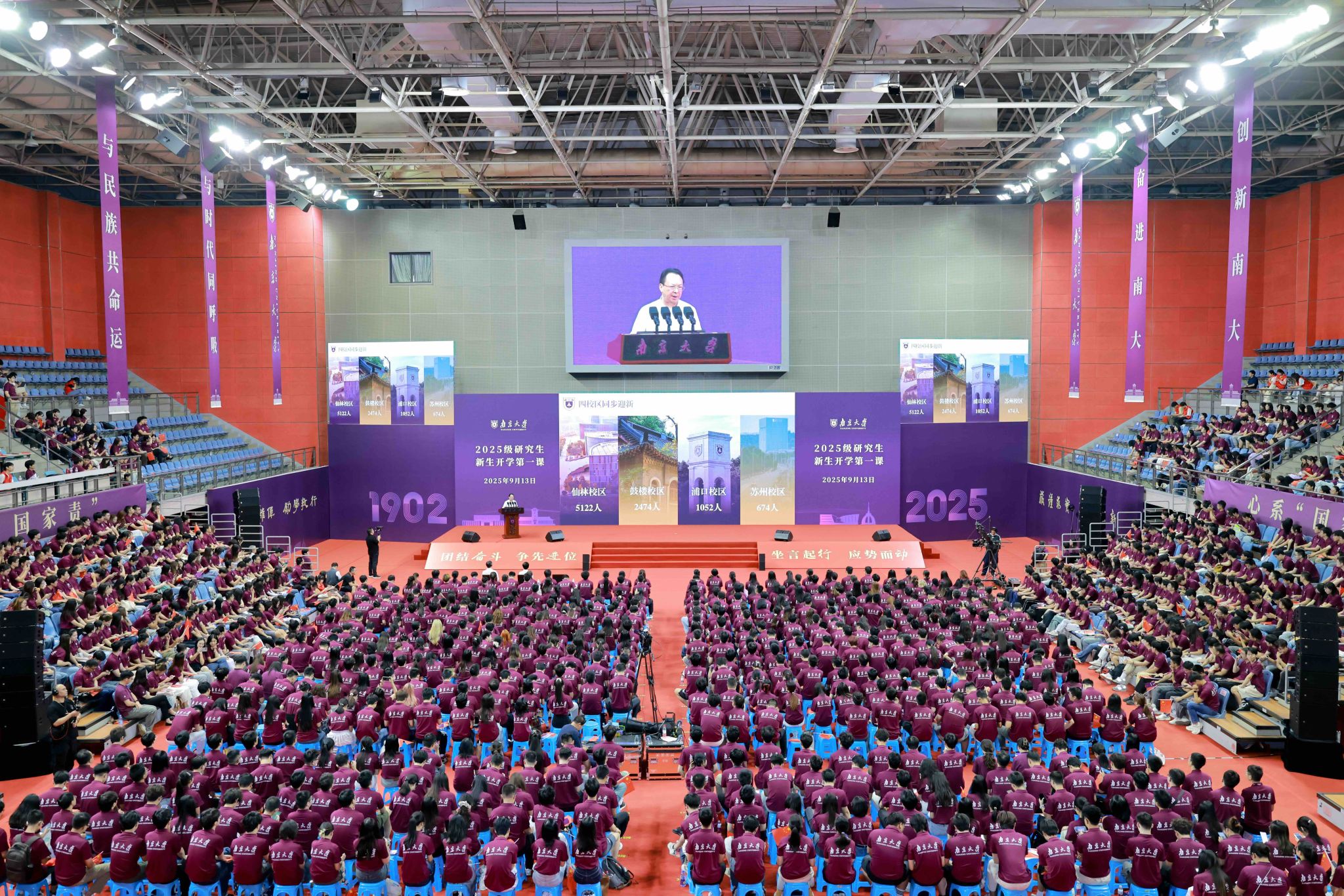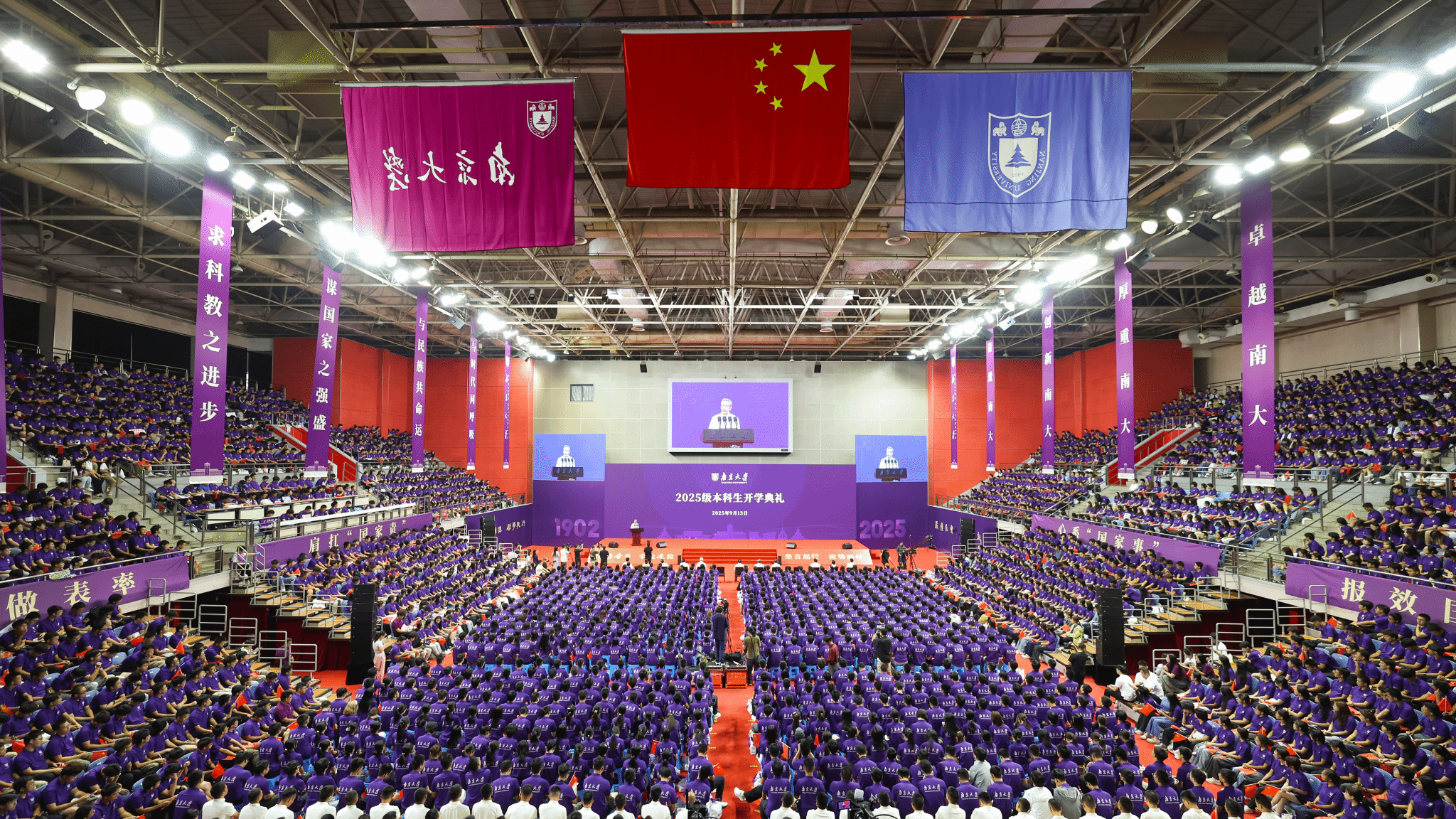 9月13日上午,凯发k8官网2025级本科生开学典礼在仙林校区方肇周体育馆举行。凯发k8官网党委书记、中国科学院院士谭铁牛出席开学典礼,凯发k8官网校长、中国科学院院士谈哲敏寄语新生“弘扬抗战精神,争做时代栋梁”。