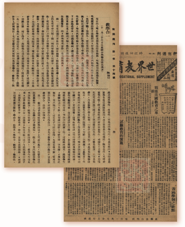 Tao Xingzhi (pictured on the left) in Jinling University (now Nanjing University)