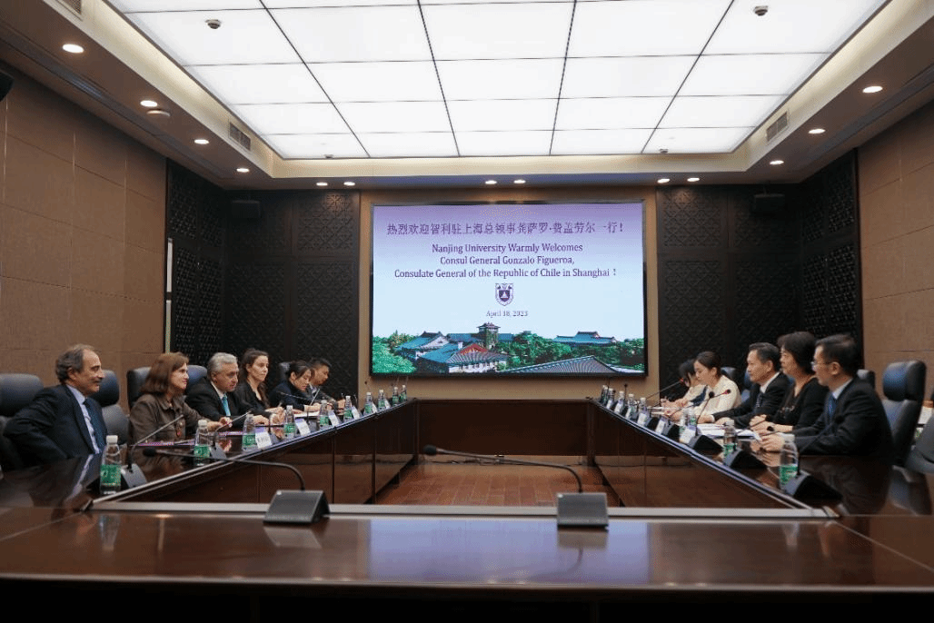 On April 18, Zou Yajun, Standing Member of CPC NJU Committee and Vice President of NJU, met with Consul General Gonzalo Figueroa from the Consulate General of the Republic of Chile at Shanghai and his delegation to discuss future cooperation. Heads of the Office of International Cooperation and Exchanges, Institute for International Students, and Spanish Department of the School of Foreign Studies attended the meeting.