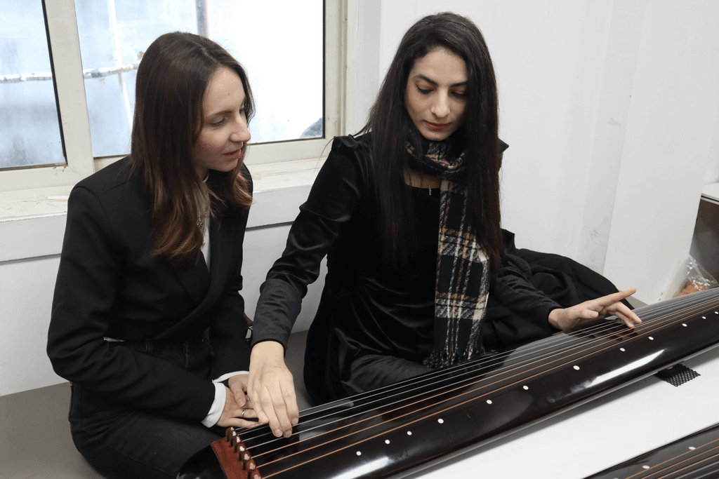 Zhou Qian, a young Guqin master, member of the Nanjing Guqin Association, and head of the Guqin Project at the Nanjing Cultural Hall's National and Folk Cultural Heritage Protection Center, along with three young Guqin artists taught the students. They guided them in exploring the 3,000-year history of the Guqin and the cultural significance of its seven strings.