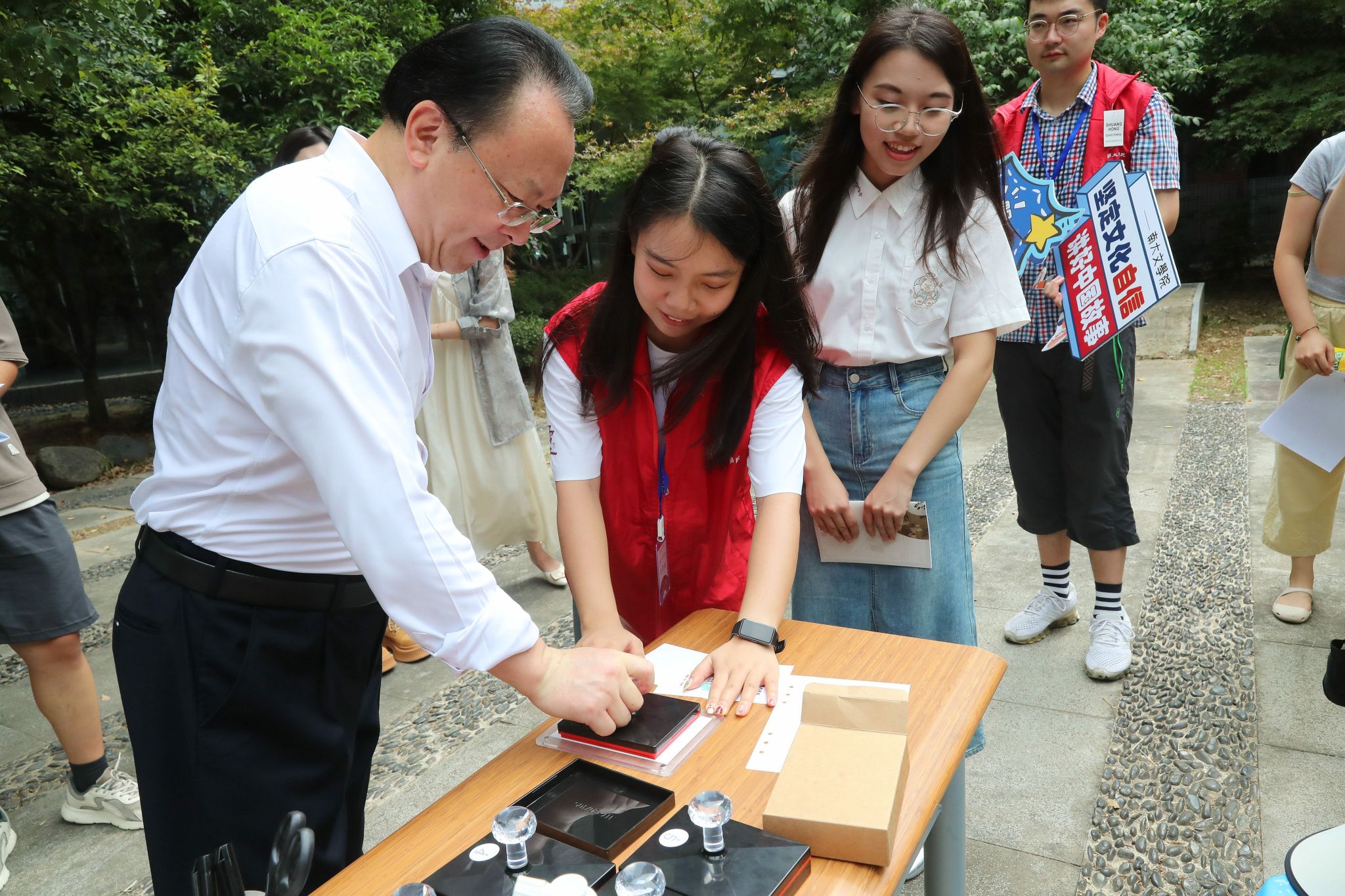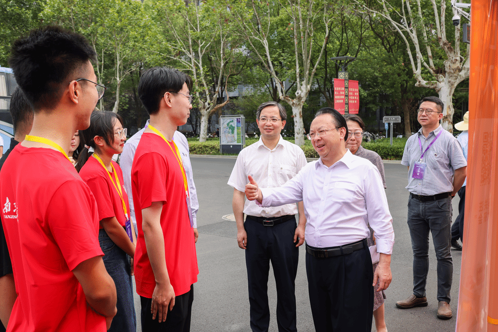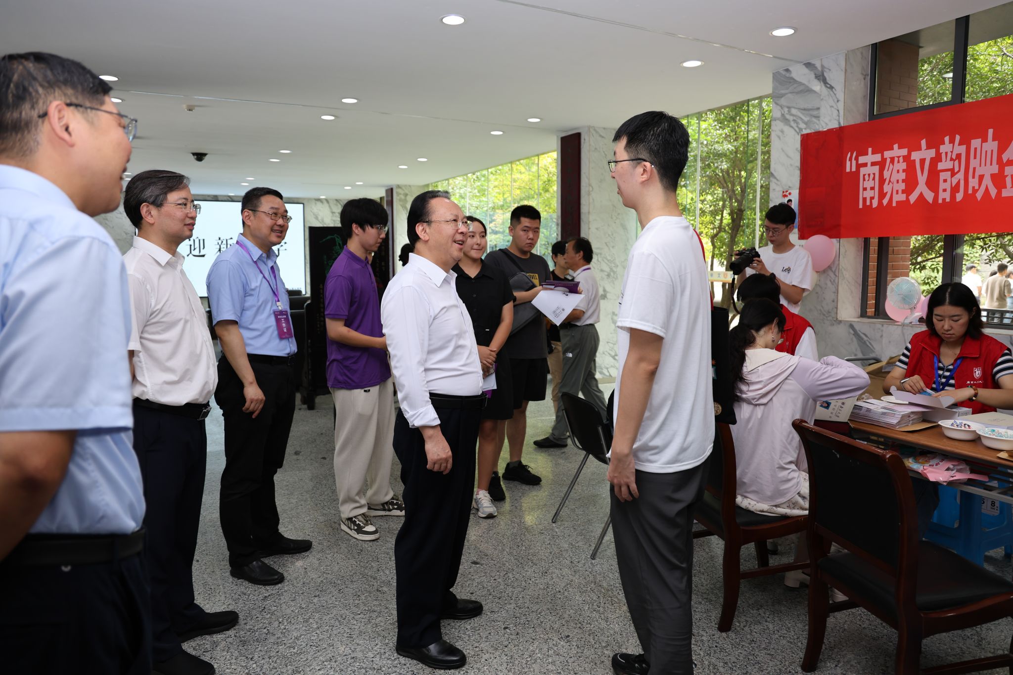 Tan Tieniu, Secretary of NJU CPC Committee and Academician of the Chinese Academy of Sciences, visite and greeted the new students. During his visit, Tan extended his heartfelt welcome to the incoming class, and expressed his appreciation to the faculty, staff, and volunteers.