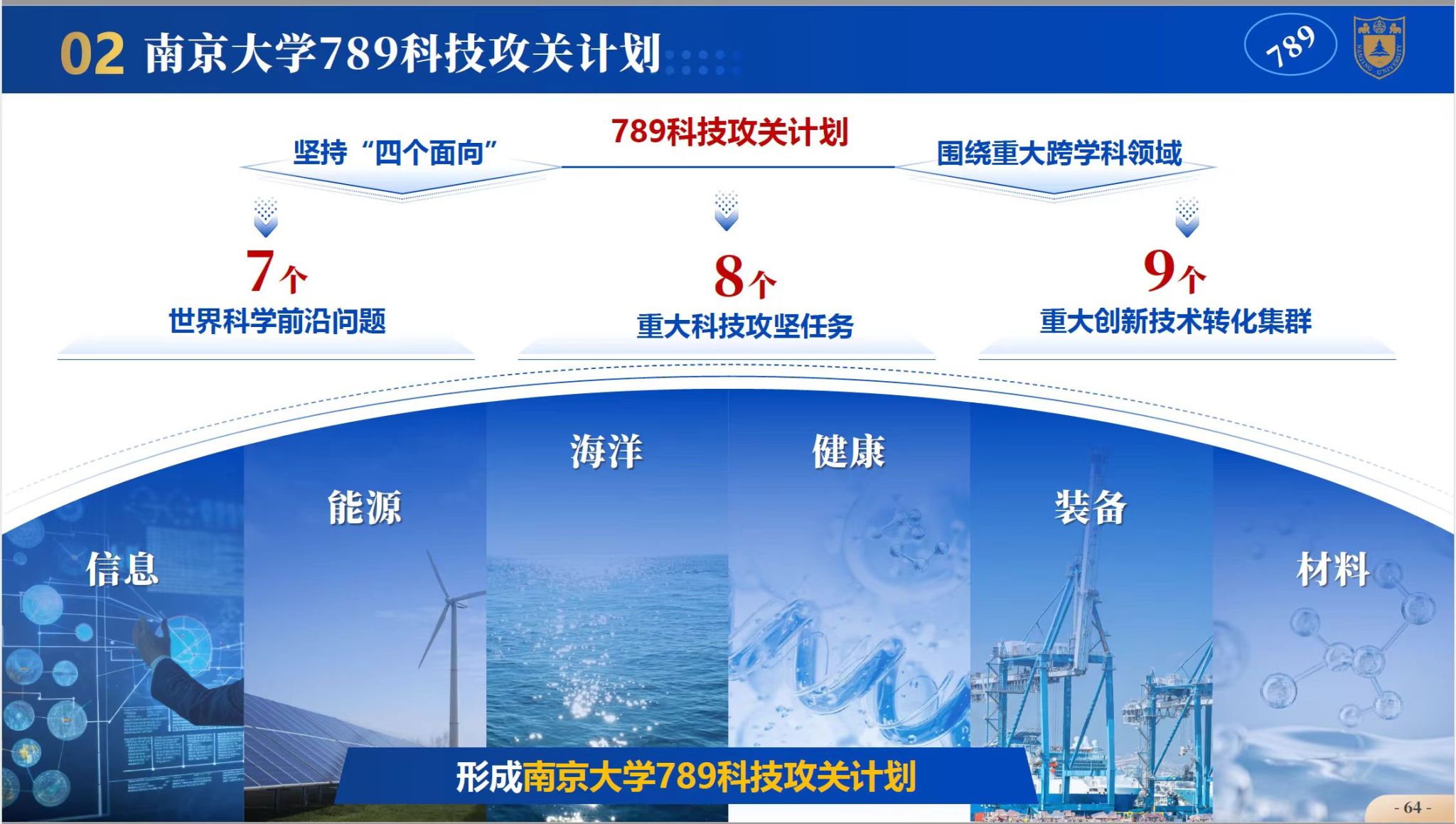 The conference announced the "Nanjing University 789 Science and Technology Research Program." This program focuses on the "15th Five-Year Plan," targeting the world's technological frontiers, the main economic areas, major national needs, and people's health, forming "7 world scientific frontier issues, 8 major technological tasks, and 9 major innovative technology transformation clusters." The plan aims to comprehensively enhance NJU's technological innovation efficiency, continuously deepen reforms in the scientific and technological innovation system and mechanism, strengthen organized research capabilities, concentrate on the research of a number of world scientific frontier issues, undertake a number of major technological tackling tasks, and build a number of major innovative technology transformation clusters, so as to effectively serve national development needs, contribute to high-level technological self-reliance, and accelerate the realization of the overall goal of building a world-class NJU with Chinese characteristics.