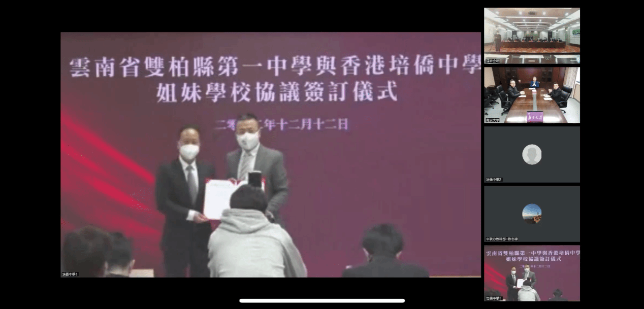 To enhance the assistance and support in education in underdeveloped regions, NJU actively promotes a sister school partnership between No. 1 High School of Shuangbai in Yunnan Province and Pui Kiu Middle School in Hong Kong Special Administrative Region. On the afternoon of December 12, the online signing ceremony of a sister school partnership between the two schools was held simultaneously in Nanjing, Chuxiong and Hong Kong.