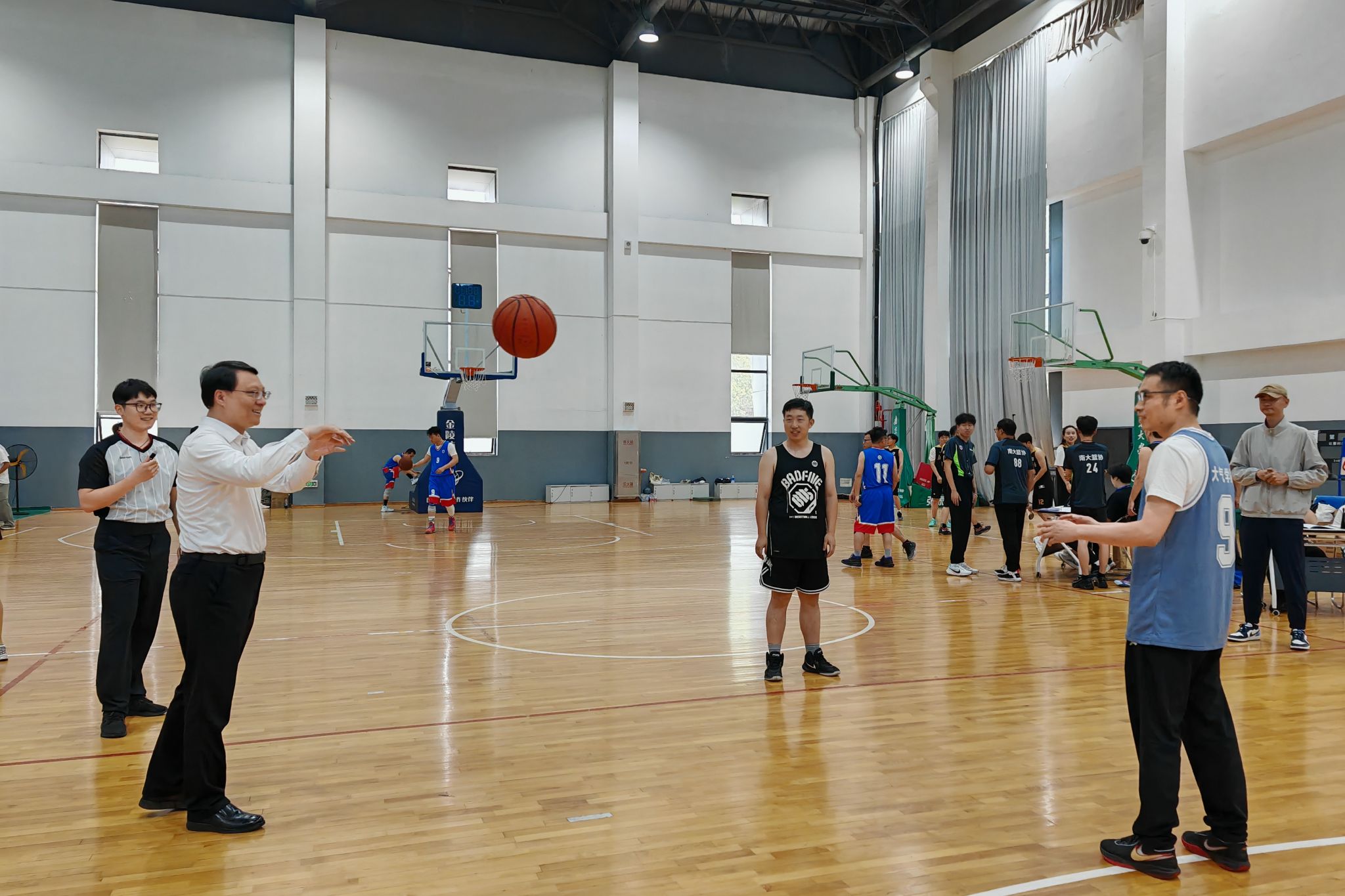 5月30日,凯发k8官网第二届教职工三对三篮球比赛在仙林校区四组团体育馆、方肇周体育馆举行。校党委副书记陈云松出席开幕式,宣布比赛开始并为比赛开球。
