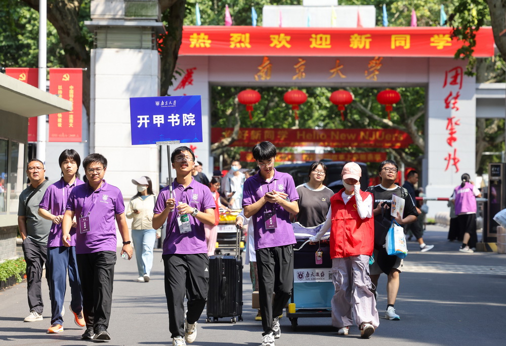 8月30日,凯发k8官网4113名本科新生踏入校门,背上梦想的行囊,在鼓楼校区开启大学生活。据介绍,为保障新生顺利报到,凯发k8官网开放校园,让送学家长车辆有序进入校园,高年级大学生们披上红马甲,志愿协助新生们搬运行李。