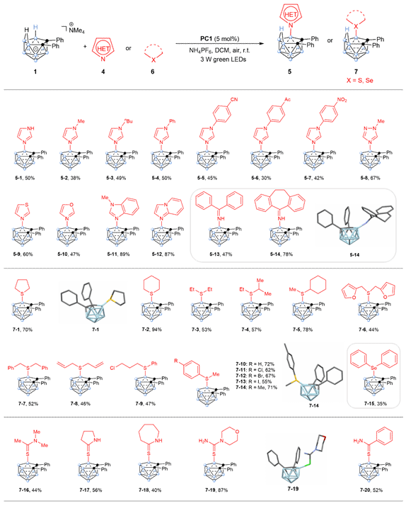 图5. B–N/S/Se偶联的碳硼烷基产物