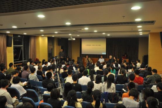 现场同学的情绪都受到极大的感染。三位教授还各用一句话概括了对“家”的印象。胡教授表示“家和万事兴”,刘教授则说“金窝银窝不如自己的狗窝”,而法国学者Michel Verne则借用了诗人爱吕雅的诗歌:“只有死亡才能唤醒我们。” Michel Verne先生满怀深情地讲到自己收养的中国小女孩,讲到自己的家庭经历,Verne教授从小被一个中国家庭收养,如今又收养了一个中国女孩儿,在他的世界里,家是一种美好的意向,也是一种令人伤感的真实。