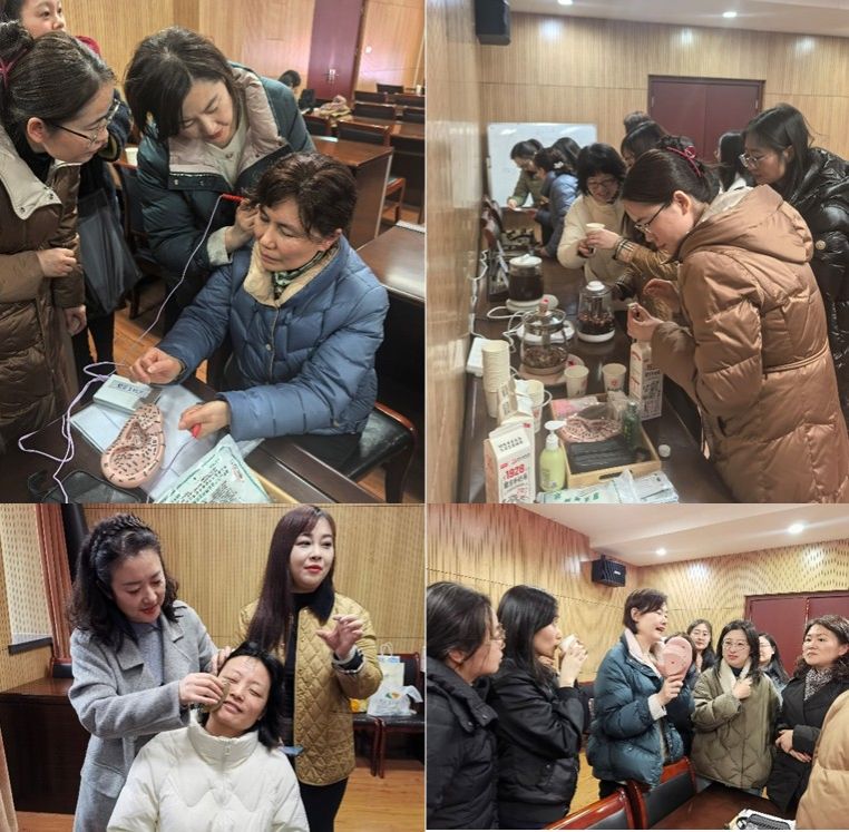 此次活动的重头戏,则是医师们邀请大家现场体验了面部刮痧、头部经络刮痧、耳穴压豆等中医特色疗法,让女教工们在舒缓的氛围中放松身心,沉浸式体验了一把中医养生的神奇魅力。